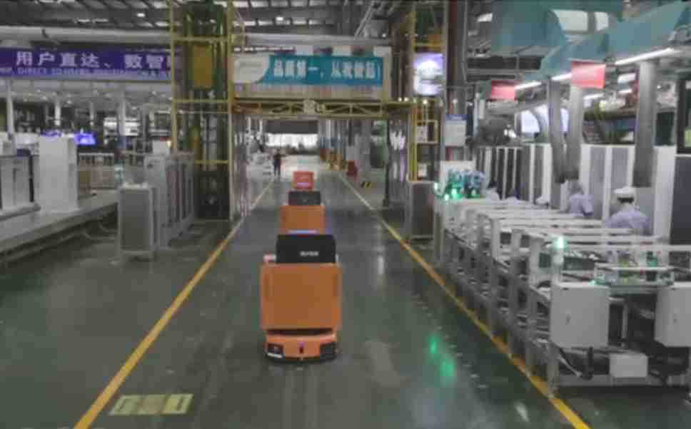 为车载冰箱物流配送打造的智能解决方案,,包含产中物流通过潜伏举升AMR搬运至线边,,,产后成品物流智能仓储,,,,流程包含产中物流智能齐套入库,,,,线边安灯叫料AMR智能配送至线边,,,成品入库、、出库,,,通过无人堆高车机器人,,,智能仓储管理替代人工作业管理,,,实现更高存储、、、更高效率、、、更具柔性化的解决方案。。。