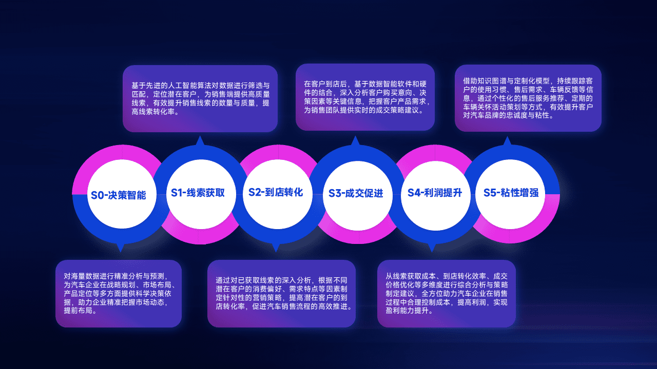 通过拓宽潜在客户来源、、优化线索分配并提高到店转化率,,,以增强销售效率。。。。同时,,利用线索数据不断优化分析模型,,,,有效提升转化率,,扩大营销影响力。。